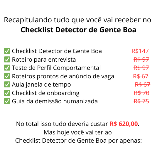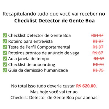 Recapitulando tudo que você vai receber no Checklist Detector de Gente Boa